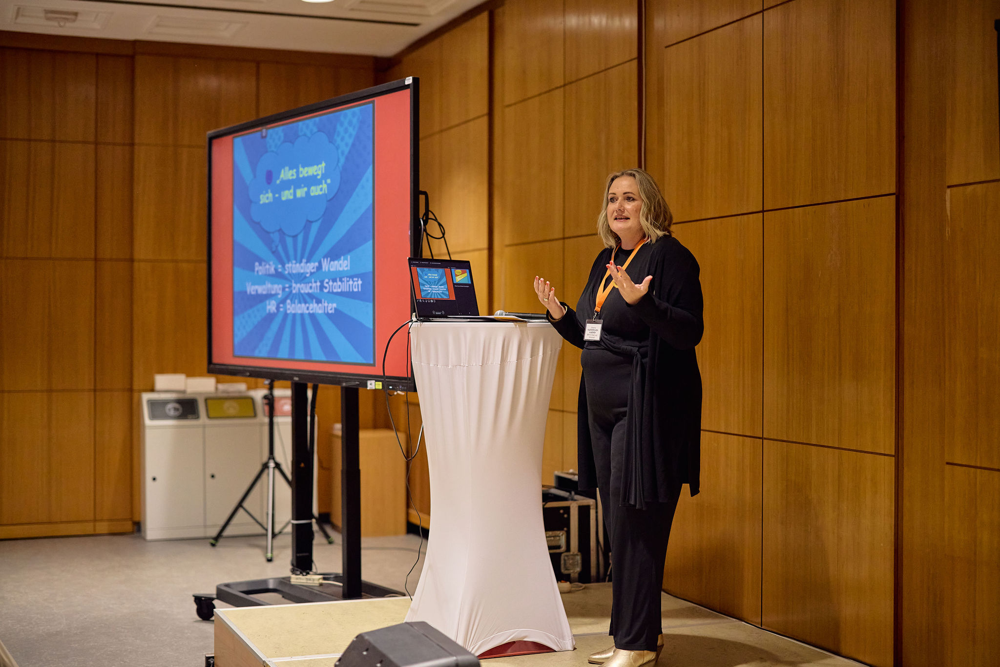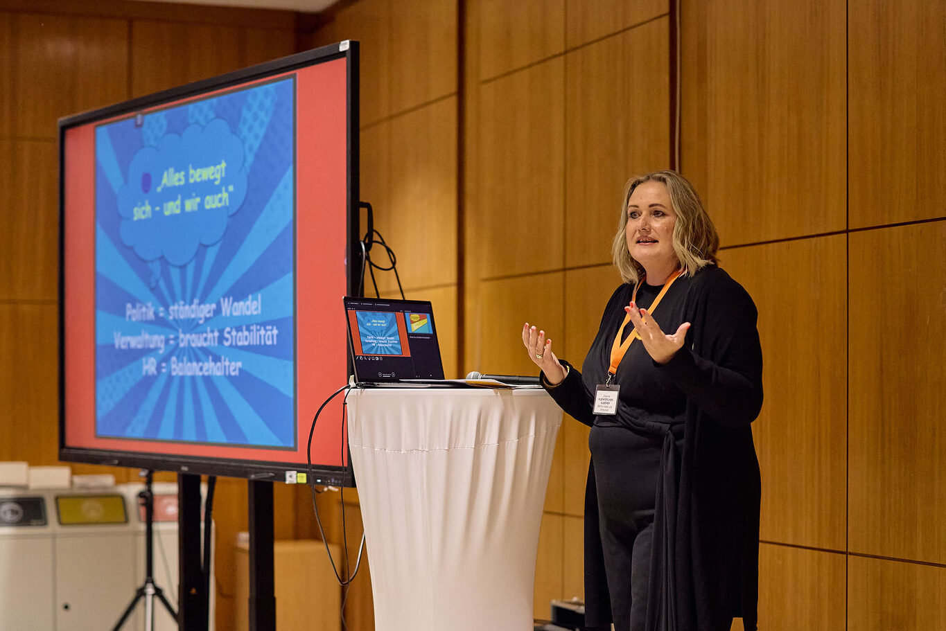 Der zweite Vortrag nahm uns in eine Welt mit, die vielen verborgen bleibt: Wie funktioniert HR, wenn sich der Aufbau von Ministerien und die zuständigen Minister:innen kontinuierlich ändern? Die Antwort gab die Personalleiterin des Sozialministeriums Johanna Kleinfercher-Alberer klar und kraftvoll: HR ist das Fundament der Stabilität und sie gehört an den Entscheidertisch.